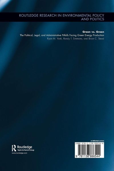 Renewable and carbon-neutral energy have been promoted as the future of energy production in the United States. Non-traditional energy sources show promise as alternatives to fossil fuels and may provide a sustainable source of energy in increasingly uncertain energy markets. However, these new sources of energy face their own set of political, administrative, and legal challenges. Green vs. Green explores how mixed land ownership and existing law and regulation present serious challenges to the development of alternative energy sources in the United States. Analytically examining and comparing five green energy sectors; wind, solar, geothermal, biofuel and hydro power, Ryan M. Yonk, Randy T. Simmons, and Brian C. Steed argue that discussing alternative energy without understanding these pitfalls creates unrealistic expectations regarding the ability to substitute "green" energy for traditional sources. The micro-goals of protecting individual areas, species, small-scale ecosystems, and other local environmental aims often limits ability to achieve macro-goals like preventing global climate change or transitioning to large-scale green energy production. Statutes and regulations designed to protect environmental and cultural integrity from degradation directly conflict with other stated environmental ends. Although there is substantial interest in adding clean energy to the grid, it appears that localized environmental interests interfere with broader environmental policy goals and the application of existing environmental laws and regulations may push us closer to gridlock. Green vs. Green provides a fascinating look into how existing environmental law created or will create substantial regulatory hurdles for future energy generations.