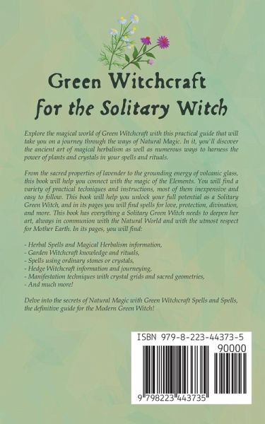 Explore the magical world of Green Witchcraft, Magick and Magical Herbalism with this practical guide that will take you on a journey through the ways of traditional Natural Magic. In it, you'll discover the ancient arts of Magical Herbalism, Garden Witchcraft, Hedge Wichcraft, Crystal Grids, and many other ways to harness the power of plants, trees, rocks and crystals in your spells and rituals. In its pages, you will find:Herbal Spells and Magical Herbalism information, Garden Witchcraft knowledge and rituals, Spells using ordinary stones or crystals, Hedge Witchcraft information and journeying, Manifestation techniques with crystal grids and sacred geometries, And much more! From the sacred properties of lavender to the grounding energy of volcanic glass, this book will help you connect with the magic of the Elements, teach you about Nature Spirits, Spirit Guides, and much more. Here you'll find a variety of practical techniques and instructions, most of them very inexpensive and easy to follow. This book will help you unlock your full potential as a Solitary Green Witch, and in its pages you'll learn spells for love, protection, divination, and more. This book has everything a Solitary Green Witch needs to deepen her art, always in communion with the Natural World and with the utmost respect for Mother Earth. Delve into the secrets of Natural Magic with Green Witchcraft Spells and Spells, the definitive guide for the Modern Green Witch! Other books in the Natural Magic and Manifestation series:The solitary witch's green book: Basic witch spells & journaling for your everyday magic practice Manifestation Meditation: A magical inner journey in 10 steps to love yourself more, believe in yourself and manifest happiness, abundance and a more fulfilling life. The Goddess Journaling Workbook: 365 daily journaling prompts to keep a manifestation mindset all year round The Solitary Witch's Green journal: A ruled notebook to write your own book of shadows