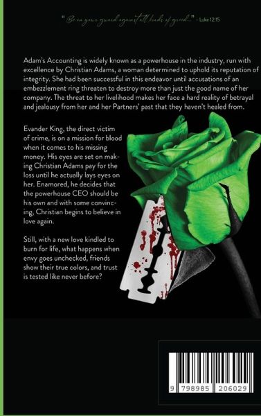 Adam's Accounting is widely known as a powerhouse in the industry, run with excellence by Christian Adams, a woman determined to uphold its reputation of integrity. She had been successful in this endeavor until accusations of an embezzlement ring threaten to destroy more than just the good name of her company. The threat to her livelihood makes her face a hard reality of betrayal and jealousy from her and her Partners' past that they haven't healed from. Evander King, the direct victim of crime, is on a mission for blood when it comes to his missing money. His eyes are set on making Christian Adams pay for the loss until he actually lays eyes on her. Enamored, he decides that the powerhouse CEO should be his own and with some convincing, Christian begins to believe in love again. Still, with a new love kindled to burn for life, what happens when envy goes unchecked, friends show their true colors, and trust is tested like never before?