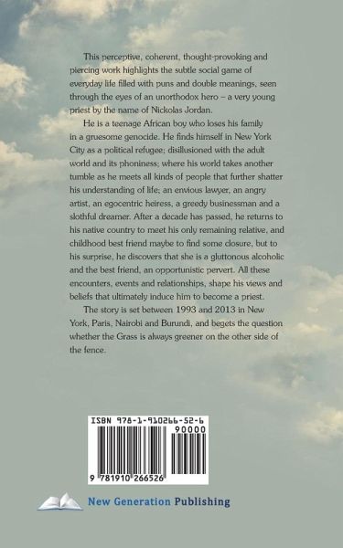 A teenage boy flees war-torn Africa and treks across the world, from New York to Paris and back to Africa, desperate to find a greater meaning to life. African teenager Nickolas returns home from school one day to find his family slaughtered. Shell-shocked, Nickolas escapes war-torn Burundi and flees to Manhattan, but the bustling, superficial city has no patience for the displaced young refugee. Uprooted and determined, Nickolas begins a new life studying psychology and theology. While at college, he meets Levy, a narcissistic law student that Nickolas follows to Paris, where they join Levy's brother, angry artist Stan. Nickolas witnesses a love triangle develop as Stan and Levy vie for the affections of wealthy socialite. Embroiled in the storm of his friends' sins and self-obsession, Nickolas struggles to find the brighter side of mankind and, at last, abandons his new life to go home after ten years of running away. Returning to Burundi, Nickolas is sure that his homeland has the purity that eluded him in New York and Paris. He is delighted to find that both his childhood best friend and his close relative are still alive, and reconnects with them, only to find them just as mired in vice. Alcoholism, womanizing, abuse, and self-indulgence are just as rife in Burundi and Kenya. Nickolas learns that, on each continent, men and women are empty and corrupt with sex, drug addiction and alcoholism. Nickolas doggedly continues on his soul-searching journey, his spirit growing stronger as he goes. Is the grass ever actually Greener on the Other Side? What does it mean to hope the best for humanity and truly turn everything over to God?