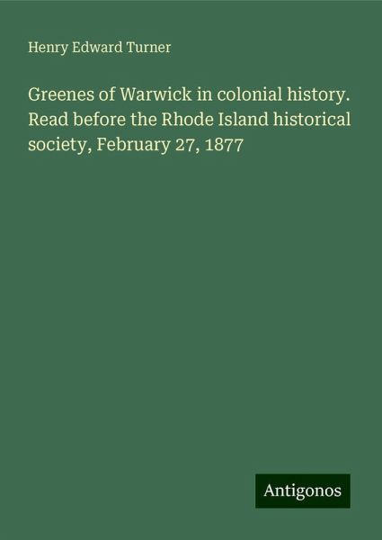 Greenes of Warwick in colonial history. Read before the Rhode Island historical society, February 27, 1877 - Turner, Henry Edward