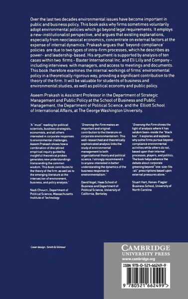 Over the last two decades environmental issues have become important in public and business policy. This book asks why firms sometimes voluntarily adopt environmental policies which go beyond legal requirements. It will be of interest to students of business and environmental studies, as well as political economy and public policy.