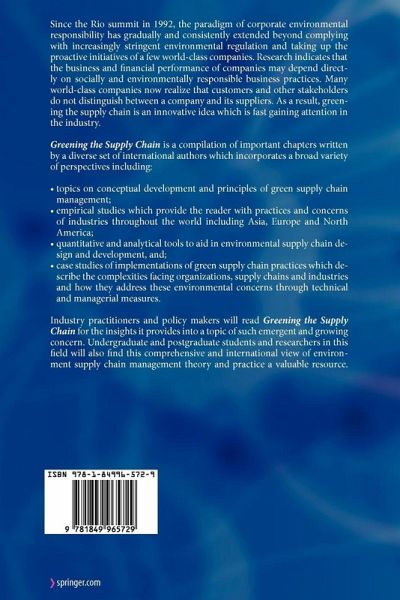 Since the 1992 Rio summit, corporate environmental responsibility has grown beyond complying with increasingly stringent environmental regulation and taking up proactive initiatives. The business and financial performance of companies may depend on being socially and environmentally responsible. Customers do not distinguish between a company and its suppliers. Thus, greening the supply chain is an innovative idea which is attracting attention. This book incorporates the following perspectives: - conceptual development and principles of green supply chain management; - empirical…mehr
