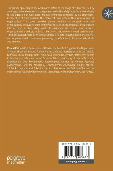 The phrase "greening of the workplace" refers to the range of resources used by an organization to ensure its management and industrial processes are conducive to the adoption of workplace pro-environmental behaviors by its employees, irrespective of their position, the nature of their work or their rank within the organization. This book provides greater visibility to research into how organizations encourage their employees to take environmental considerations into account in their daily work. It examines the connections between organizational practices, individual behaviors, and environmental performance. This book will appeal to HRM scholars interested in the psychological, managerial and organizational dimensions governing the relationship between individuals and ecology.