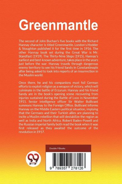 The second of John Buchan's five books with the Richard Hannay character is titled Greenmantle. London's Hodder & Stoughton published it for the first time in 1916. The other Hannay book set during the Great War is Mr. Standfast (1919). The Thirty-Nine Steps (1915), Hannay's earliest and best-known adventure, takes place in the years just before the war. Hannay travels through dangerous enemy territory to see his friend Sandy in Constantinople after being asked to look into reports of an insurrection in the Muslim world. Once there, he and his companions must foil German efforts to exploit…mehr
