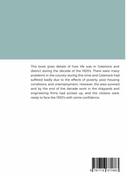 This book gives details of life in Greenock and district during the decade of the 1920's. There were many problems in Great Britain during this era and Greenock suffered the effects of poverty, poor housing conditions, and unemployment. However, the town survived and by the end of the decade work in the shipyards and engineering firms had started to pick up, and the citizens were ready to face the 1930's with some confidence.