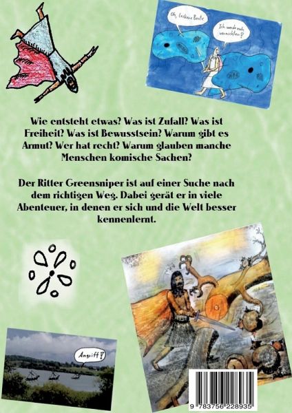 Der Ritter Greensniper erkennt, dass die Welt aus den Fugen geraten ist. Er will die Ursache nach dem Bösen ergründen. Er geht durch viele Abenteuer, in denen er u.a. mit folgenden Fragen konfrontiert wird:Wie entsteht etwas? Was ist Zufall? Was ist Freiheit? Was ist Bewusstsein? Warum gibt es Armut? Wer hat recht? Warum glauben manche Menschen komische Sachen? Welches ist der richtige Weg?