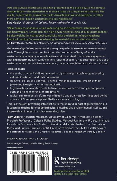 'Miller takes no prisoners in this wide-ranging and persuasive indictment of eco-hoodwinkery. Laying bare the high environmental costs of cultural production, he also weighs its institutional complicity with the black art of greenwashing. Required reading for anyone following the material turn in Cultural Studies.'