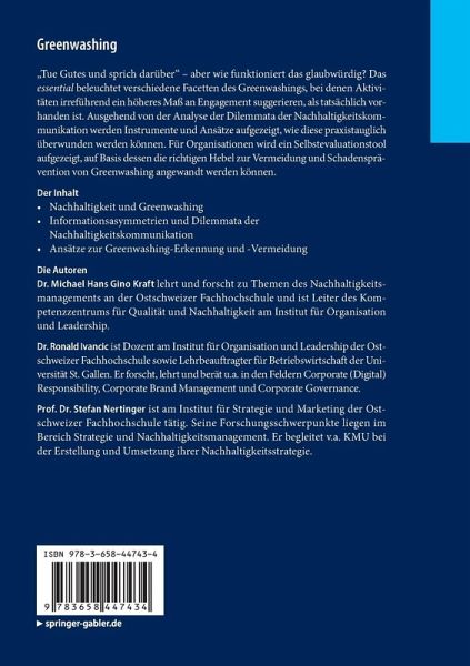 "Tue Gutes und sprich darüber" - aber wie funktioniert das glaubwürdig? Das essential beleuchtet verschiedene Facetten des Greenwashings, bei denen Aktivitäten irreführend ein höheres Maß an Engagement suggerieren, als tatsächlich vorhanden ist. Ausgehend von der Analyse der Dilemmata der Nachhaltigkeitskommunikation werden Instrumente und Ansätze aufgezeigt, wie diese praxistauglich überwunden werden können. Für Organisationen wird ein Selbstevaluationstool aufgezeigt, auf Basis dessen die richtigen Hebel zur Vermeidung und Schadensprävention von Greenwashing angewandt werden können.