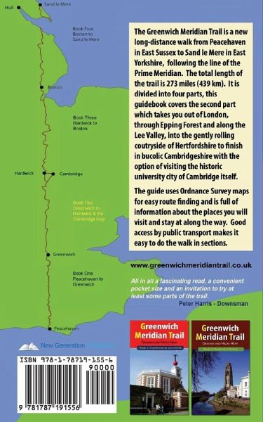 The Greenwich Meridian Trail is a new long-distance walk from Peacehaven in East Sussex to Sand le Mere in East Yorkshire, following the line of the Prime Meridian. The total length of the trail is 273 miles (439 km). It is divided into four parts, this guidebook covers the second part, which takes you out of London, through Epping Forest nad along the Lee Valley, into the gently rolling countryside of Hertfordshire to finish in bucolic Cambridgeshire with the option of visiting the historic university city of Cambridge itself. The guide uses ordnance survey maps for easy route finding and is full of information about the places you will visit and stay at along the way. Good access by public transport makes it easy to do the walk in sections.