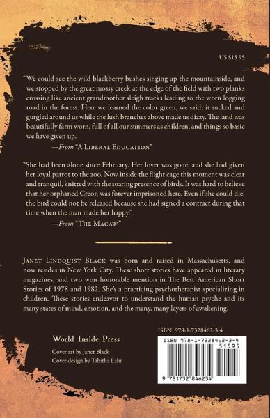 Greet the Dawn, by Janet Lindquist Black (a Manhattan psychotherapist), provides us a trove of short stories which consistently achieved publication and prizes in the late 1970s and '80s. Two of these unique tales won honorable mention in The Best American Short Stories of the years 1978 ad 1982. Stories include: . two sisters who send their parents back to fifth grade. . a boy living in a Finnish-American lumber town in 1929 coping with primitive fears. . a middle-aged father who undertakes an architectural re-rendering of his life. This is experimental writing, inspired by the author's admiration of writers such as Proust and Clarice Lispector. One piece of unconscious writing, drawn from a place of dreams or primary process, evolves without restraints of ego or deliberation. What flows through this collection is Janet Black's creative play of language, wrapped in luminous imagery.