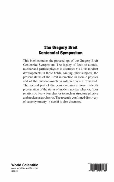 This book contains the proceedings of the Gregory Breit Centennial Symposium. The legacy of Breit to atomic, nuclear and particle physics is discussed vis-à-vis modern developments in these fields. Among other subjects, the present status of the Breit interaction in atomic physics and of the nucleon-nucleon interaction are reviewed. The second part of the book contains a more in-depth presentation of the status of modern nuclear physics, from relativistic heavy ion physics to nuclear structure physics and nuclear astrophysics. The recently confirmed discovery of supersymmetry in nuclei is also discussed.