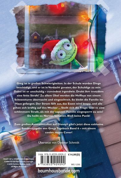 Der Comic-Roman-Bestseller für Kinder ab 10 - mit coolem neuem Cover - zum Animationsfilm auf Disney+Mit der Familie im Winter eingeschneit werden? Bloß nicht die Nerven verlieren, Greg!Greg ist in großen Schwierigkeiten. In der Schule wurden Dinge beschädigt, und er ist in Verdacht geraten, der Schuldige zu sein. Dabei ist er unschuldig - zumindest irgendwie. Droht ihm trotzdem eine fette Strafe? Zu allem Übel werden die Heffleys von einem Schneesturm überrascht und eingeschneit. So bleibt die Familie im Haus gefangen. Der Strom fällt aus, das Essen wird knapp und alle gehen sich kräftig auf den Wecker ... Stellt sich die Frage: Gibt es eine schlimmere Strafe, als mit der eigenen Familie eingesperrt zu sein? Da heißt es: Nerven behalten. Bloß keine Panik!Dieses Buch steckt voller witziger Familien-Katastrophen, Winter-Chaos und natürlich dem typischen GREGS TAGEBUCH-Humor, den Fans so lieben. Ein Muss für alle, die lustige Wintergeschichten lieben und Geschichten voller Spaß, Freundschaft und verrückter Ideen mögen. Warum du dieses Buch lesen solltest: Lustige Story mit hohem Wiedererkennungswert Perfekt für Kinder ab 10 Jahren Humorvoll, spannend und ideal zum Verschenken Ein neues Abenteuer mit Greg, das garantiert für gute Laune sorgt GREGS TAGEBUCH ist Kult - die mehrfach preisgekrönte Comic-Roman-Reihe von Jeff Kinney mit weltweit über 300 Millionen verkauften Büchern begeistert Kinder (und Eltern!)