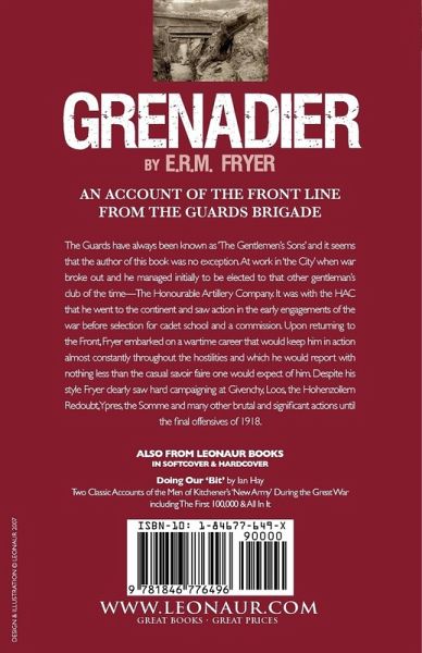 An account of the Front Line from the Guards Brigade The Guards have always been known as 'The Gentlemen's Sons' and it seems that the author of this book was no exception. At work in 'the City' when war broke out and he managed initially to be elected to that other gentleman's club of the time-The Honourable Artillery Company. It was with the HAC that he went to the continent and saw action in the early engagements of the war before selection for cadet school and a commission. Upon returning to the Front, Fryer embarked on a wartime career that would keep him in action almost constantly throughout the hostilities and which he would report with nothing less than the casual savoir faire one would expect of him. Despite his style Fryer clearly saw hard campaigning at Givenchy, Loos, the Hohenzollern Redoubt, Ypres, the Somme and many other brutal and significant actions until the final offensives of 1918.