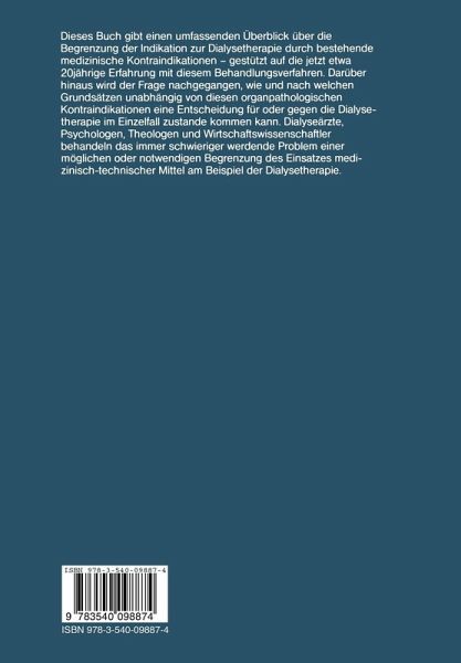 Einführung in die Thematik.- Dialyse im Kindesalter.- Dialyse bei Diabetes mellitus.- Dialyse bei Systemkrankheiten und malignen Tumoren.- Gefäßanschluß als limitierender Faktor.- Dialyse bei psychisch Kranken.- Alter als limitierender Faktor.- Grenzen der Heimdialysebehandlung.- Peritonealdialyse als Dauerbehandlung bei chronischer Niereninsuffizienz.- Finanzielle Grenzen des Dialyseprogrammes.- Sind Auswahlkriterien zulässig?.- Gibt es diesseits des ultra posse nemo obligatur legitime Begrenzungen der Dialyseindikation? Sammelreferat zur Diskussion des 2. Symposiumtages.