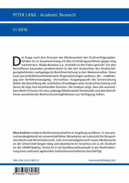 Die Frage nach den Grenzen der Medienarbeit der Strafverfolgungsbehörden ist im Zusammenhang mit den Ermittlungsverfahren gegen Jörg Kachelmann, Nadja Benaissa u.a. verstärkt in den Fokus gerückt. Für den Betroffenen besonders problematisch ist die den Auskünften der Strafverfolgungsbehörden nachgelagerte Berichterstattung in den Massenmedien. Diese kann persönlichkeitsrechtsrelevante Stigmatisierungen auslösen, die - unabhängig vom Verfahrensausgang - fortwirken. Ausgangspunkt der Untersuchung bilden die Darstellung der rechtlichen Grundlagen einer Auskunftserteilung und deren de lege lata bestehenden Grenzen. Die Analyse zeigt, dass das anwendbare Recht Kriterien für eine zulässige Medienarbeit bereitstellt und dem Betroffenen ausreichende Rechtsschutzmöglichkeiten zur Verfügung stehen.