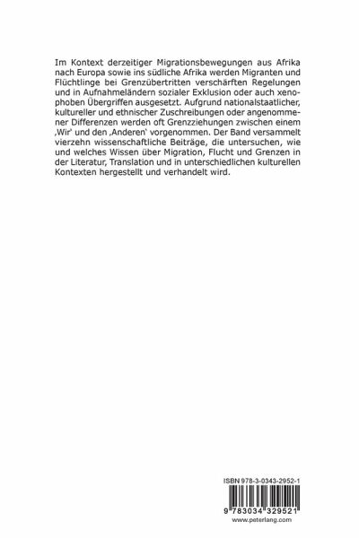 Im Kontext derzeitiger Migrationsbewegungen aus Afrika nach Europa sowie ins südliche Afrika werden Migranten und Flüchtlinge bei Grenzübertritten verschärften Regelungen und in Aufnahmeländern sozialer Exklusion oder auch xenophoben Übergriffen ausgesetzt. Aufgrund nationalstaatlicher, kultureller und ethnischer Zuschreibungen oder angenommener Differenzen werden oft Grenzziehungen zwischen einem 'Wir' und den 'Anderen' vorgenommen. Der Band versammelt vierzehn wissenschaftliche Beiträge, die untersuchen, wie und welches Wissen über Migration, Flucht und Grenzen in der Literatur, Translation und in unterschiedlichen kulturellen Kontexten hergestellt und verhandelt wird.