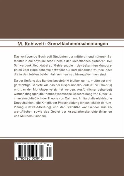 Eine knappe Einführung in die Grenzflächenerscheinungen zu geben, ist schwierig, da sie sowohl die Kolloidehernie als auch die Grenzflächenerscheinun gen an makroskopischen Körpern einschließen sollte. Beide Gebiete sind aber in zwischen so angewachsen, daß jedes von ihnen eine gesonderte Einführung ver dient hätte. Da andererseits der Umfang dieses Bandes beschränkt bleiben sollte, stand der Autor vor der Wahl, sich entweder auf ein Gebiet zu beschränken, oder aus beiden einige ausgewählte Kapitel zu behandeln. In dieser Einführung ist der erste Weg gewählt worden, obwohl auch die Beschränkung auf die Kol loidchemie schon schwierig genug ist. Über sie gibt es eine Reihe guter Monogra phien, und ein Blick in deren Inhaltsverzeichnis genügt, um dem Studenten den ganzen Umfang dieses Gebietes vor Augen zu führen. In dem vorliegenden Band wird daher versucht, sich auf solche Kapitel zu be schränken, die entweder in den anderen Monographien nur kurz behandelt wor den sind, oder solche, die in den letzten bei den Jahrzehnten hinzugekommen sind. Dabei ließ es sich nicht vermeiden, einige Themen aufzugreifen, die auch in anderen Bänden dieser Reihe ihren Platz hätten finden können. So ist beispiels weise die Phasenbildung eine vielstufige chemische Reaktion, deren Theorie je doch im Band IV dieser Reihe aus guten Gründen nicht behandelt worden ist.