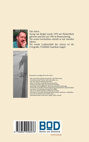 "Verdammt" Er hob den Kopf vom Kissen und wurde dafür mit stechenden Kopfschmerzen und einem fürchterlichen Schwindelgefühl belohnt. Langsam ließ der Mann sich wieder auf sein Bett zurücksinken und versuchte seine Gedanken zu sortieren und gleichzeitig die aufsteigende Übelkeit zu verdrängen. Was war gestern eigentlich passiert? ...Geschichten aus dem Leben, zum Teil autobiografisch und Briefe die niemals geschrieben wurden. Geschichten wie sie täglich passieren könnten. Brutal, traurig, amüsant schildert der Autor Situationen aus dem Alltag von Menschen in besonderen Situationen ...Kommentare zu einigen Storys des Autors:- Puh, sehr tolle Geschichte und mit sehr viel Wahrem drin.- Erwachsene sehen Wunder nicht mehr ,leider...ja...- Sehr nett, habe herzhaft geschmunzelt - deine Geschichten sind großartig und entsetzlich- Ich kann nur danke sagen, dass wir das lesen dürfen...- das berührt mich unglaublich.. Mehr kann und will ich nicht sagen- Ich finde die Geschichte ist wahnsinnig traurig, entspricht leider auch der Realität.- wie immer sehr tiefsinnig und spannend erzählt. - Puh, die Geschichte geht aber richtig unter die Haut.