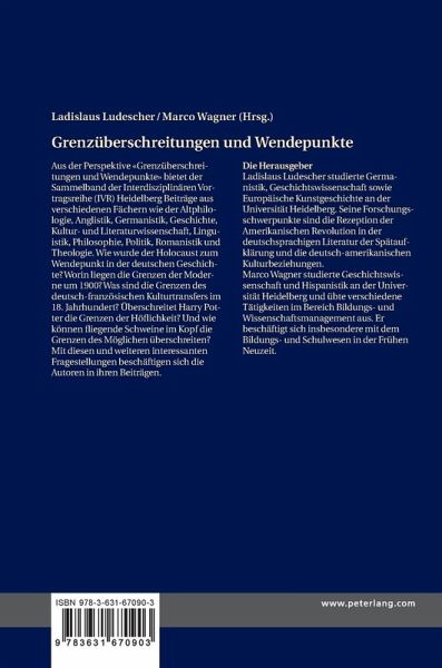 Aus der Perspektive «Grenzüberschreitungen und Wendepunkte» bietet der Sammelband der Interdisziplinären Vortragsreihe (IVR) Heidelberg Beiträge aus verschiedenen Fächern wie der Altphilologie, Anglistik, Germanistik, Geschichte, Kultur- und Literaturwissenschaft, Linguistik, Philosophie, Politik, Romanistik und Theologie.