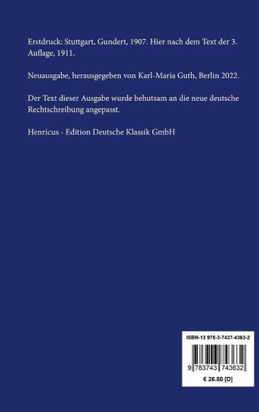 Agnes Sapper: Gretchen Reinwalds letztes Schuljahr. Eine Erzählung für Mädchen von 13-16 JahrenErstdruck: Stuttgart, Gundert, 1907. Hier nach dem Text der 3. Auflage, 1911.Neuausgabe, herausgegeben von Karl-Maria Guth, Berlin 2023.Der Text dieser Ausgabe wurde behutsam an die neue deutsche Rechtschreibung angepasst.Umschlagabbildung: Buchillustration von Cora LauzilGesetzt aus der Minion Pro, 11 pt.Die Sammlung Hofenberg erscheint im Verlag Henricus - Edition Deutsche Klassik GmbH, Berlin