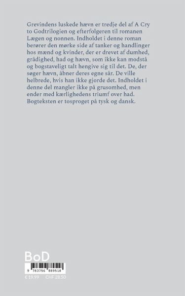 Grevindens luskede hævn er tredje del af A Cry to Godtrilogien og efterfolgeren til romanen Lægen og nonnen. Indholdet i denne roman berører den mørke side af tanker og handlinger hos mænd og kvinder, der er drevet af dumhed, grådighed, had og hævn, som ikke kan modstå og bogstaveligt talt hengive sig til det. De, der søger hævn, åbner deres egne sår. De ville helbrede, hvis han ikke gjorde det. Indholdet i denne del mangler ikke på grusomhed, men ender med kærlighedens triumf over had. Bogteksten er tosproget på tysk og dansk.