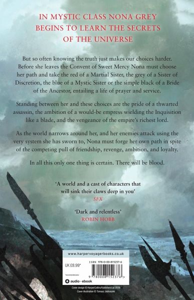 In Mystic Class Nona Grey begins to learn the secrets of the universe. But so often, knowing the truth just makes our choices harder. Before she leaves the Convent of Sweet Mercy, Nona must choose her path and take the red of a Martial Sister, the grey of a Sister of Discretion, the blue of a Mystic Sister or the simple black of a Bride of the Ancestor, entailing a life of prayer and service.