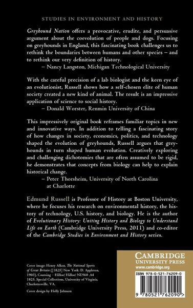 Edmund Russell's much-anticipated new book examines interactions between greyhounds and their owners in England from 1200 to 1900 to make a compelling case that history is an evolutionary process. Challenging the popular notion that animal breeds remain uniform over time and space, Russell integrates history and biology to offer a fresh take on human-animal coevolution. Using greyhounds in England as a case study, Russell shows that greyhounds varied and changed just as much as their owners. Not only did they evolve in response to each other, but people and dogs both evolved in response to the forces of modernization, such as capitalism, democracy, and industry. History and evolution were not separate processes, each proceeding at its own rate according to its own rules, but instead were the same.