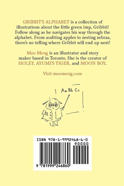 "Gribbit's Alphabet" is a collection of illustrations about the little green imp, Gribbit. Follow along as he navigates his way through the alphabet. From auditing apples to zesting zebras, there's no telling where Gribbit will end up next!