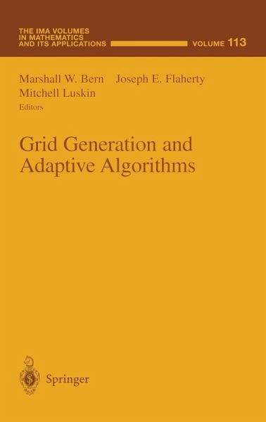 The papers in this volume are based on lectures given at the IMA Workshop on Grid Generation and Adaptive Algorithms held during April 28 - May 2, 1997. Grid generation is a common feature of many computational tasks which require the discretization and representation of space and surfaces. The papers in this volume discuss how the geometric complexity of the physical object or the non-uniform nature of the solution variable make it impossible to use a uniform grid. Since an efficient grid requires knowledge of the computed solution, many of the papers in this volume treat how to construct grids that are adaptively computed with the solution. This volume will be of interest to computational scientists and mathematicians working in a broad variety of applications including fluid mechanics, solid mechanics, materials science, chemistry, and physics. Papers treat residual-based error estimation and adaptivity, repartitioning and load balancing for adaptive meshes, data structures and local refinement methods for conservation laws, adaptivity for hp-finite element methods, the resolution of boundary layers in high Reynolds number flow, adaptive methods for elastostatic contact problems, the full domain partition approach to parallel adaptive refinement, the adaptive solution of phase change problems, and quality indicators for triangular meshes.