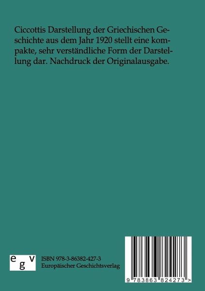 Ciccottis Darstellung der Griechischen Geschichte aus dem Jahr 1920 stellt eine kompakte, sehr verständliche Form der Darstellung dar. Nachdruck der Originalausgabe.