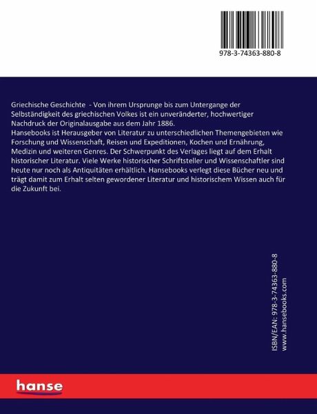 Griechische Geschichte - Von ihrem Ursprunge bis zum Untergange der Selbständigkeit des griechischen Volkes ist ein unveränderter, hochwertiger Nachdruck der Originalausgabe aus dem Jahr 1886.