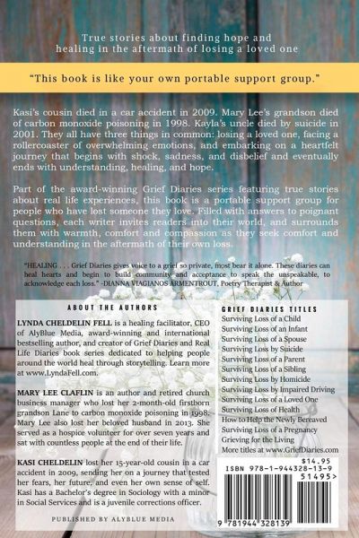 Kasi lost her 15-year-old cousin in a car accident. Nancy lost her 44-year-old stepmother to homicide. Sharon lost her 52-year-old best friend to suicide. Part of the award-winning Grief Diaries series, Surviving Loss of a Loved One shares the poignant stories of people who have all lost someone close to them. Covering tender issues such as surviving the funeral and transition, navigating the holidays, handling sensitive questions and more, Surviving Loss of a Loved One is a wonderful source of comfort for all who share the journey, and offers a treasured reminder that none of us walk this journey alone. See all books in the award-winning series at GriefDiaries.com. "CRITICALLY IMPORTANT . . . I want to say to Lynda that what you are doing is so critically important." -DR. BERNICE A. KING, Daughter of Dr. Martin Luther King