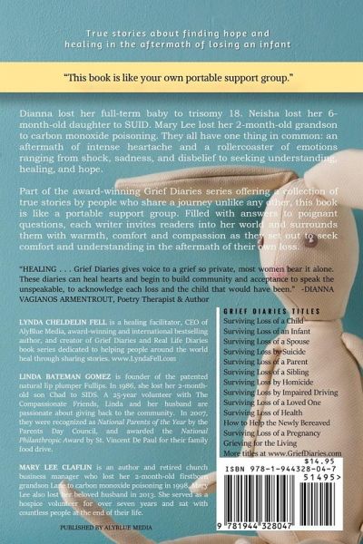 Dianna lost her newborn daughter to trisomy 18. Linda lost her 8-week-old son to SIDS. Melissa’s 13-month-old son died from sepsis. Part of the award-winning Grief Diaries series, Surviving Loss of an Infant shares the poignant stories of mothers who have all lost a baby. Covering tender issues such as handling painful birth and death dates, sorting through belongings, facing our fears and more, Surviving Loss of an Infant is a wonderful source of comfort for all who share a similar journey, and offers a treasured reminder that none of us walk it alone. See all books in the award-winning series at GriefDiaries.com. "HEALING . . . Grief Diaries: Surviving Loss of an Infant gives voice to a grief so private, most women bear it alone. These diaries can heal hearts and begin to build community and acceptance to speak the unspeakable, to acknowledge each loss and the child. Share this book with your sisters, mothers, grandmothers and friends who have faced the same grief. Pour a cup of tea together and know that you are no longer alone." -DIANNA VAGIANOS ARMENTROUT, Poetry Therapist & Author of Walking the Labyrinth of My Heart: A Journey of Pregnancy, Grief and Infant Death
