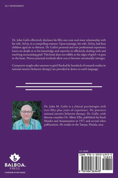 Dr. John Gullo effectively discloses his fifty-one-year soul mate relationship with his wife, Sylvia, in a compelling manner. Upon marriage, his wife, Sylvia, had four children aged six to thirteen. Dr. Gullo’s personal and vast professional experience leaves no doubt as to his knowledge and expertise in efficiently dealing with and resolving excruciating grief. This book does not nibble at the edges of grief—it goes to the heart. Proven practical methods allow you to become emotionally stronger. Competent sought-after answers to grief (backed by hundreds of research studies in rational emotive behavior therapy) are provided in down-to-earth language.
