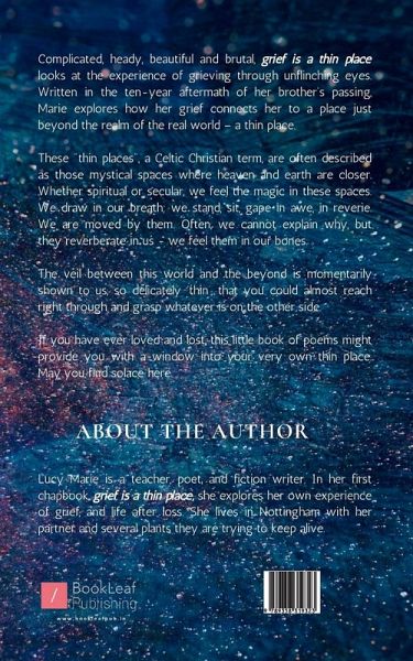 Complicated, heady, beautiful and brutal, grief is a thin place looks at the experience of grieving through unflinching eyes. Written in the ten-year aftermath of her brother's passing, Marie explores how her grief connects her to a place just beyond the realm of the real world - a thin place. These thin places, a Celtic Christian term, are often described as those mystical spaces where heaven and earth are closer. Whether spiritual or secular, we feel the magic in these spaces. We draw in our breath; we stand, sit, gape in awe, in reverie. We are moved by them. Often, we cannot explain why, but they reverberate in us - we feel them in our bones. The veil between this world and the beyond is momentarily shown to us, so delicately 'thin', that you could almost reach right through and grasp whatever is on the other side. If you have ever loved and lost, this little book of poems might provide you with a window into your very own thin place. May you find solace here.