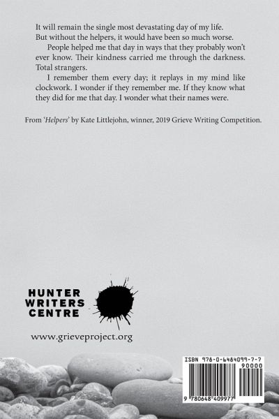 It will remain the single most devastating day of my life. But without the helpers, it would have been so much worse. People helped me that day in ways that they probably won't ever know. Their kindness carried me through the darkness. Total strangers. I remember them every day; it replays in my mind like clockwork. I wonder if they remember me. If they know what they did for me that day. I wonder what their names were. From 'Helpers' by Kate Littlejohn, winner, 2019 Grieve Writing Competition.