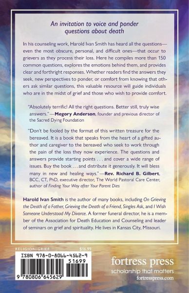 In his counseling work, Harold Ivan Smith has heard all the questions - even the most obscure, personal, and difficult ones - that occur to grievers as they process their loss. Here he compiles more than 150 common questions, explores the emotions behind them, and provides clear and forthright responses. Whether readers find the answers they seek, new perspectives to ponder, or comfort from knowing that others ask similar questions, this valuable resource will guide individuals who are in the midst of grief and those who wish to provide comfort.