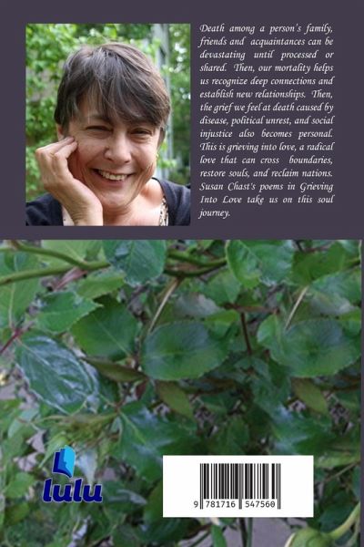 Death among a person's family, friends and acquaintances can be devastating until processed or shared. Then, our mortality helps us recognize deep connections and establish new relationships. Then, the grief we feel at death caused by disease, political unrest, and social injustice also becomes personal. This is grieving into love, a radical love that can cross boundaries, restore souls, and reclaim nations. Susan Chast's poems in Grieving Into Love take us on this soul journey. Susan is also the author of reMothering, also available at lulu.com http://susanspoetry.blogspot.com