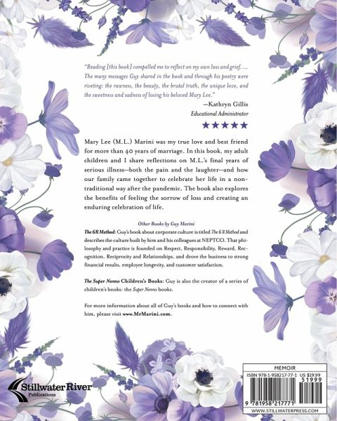 Mary Lee (M.L.) Marini was my true love and best friend for more than 40 years of marriage. In this book, my adult children and I share reflections on M.L.'s final years of serious illness-both the pain and the laughter-and how our family came together to celebrate her life in a non-traditional way after the pandemic. The book also explores the benefits of feeling the sorrow of loss and creating an enduring celebration of life. "Reading [this book] compelled me to reflect on my own loss and grief. ... The many messages Guy shared in the book and through his poetry were riveting: the rawness, the beauty, the brutal truth, the unique love, and the sweetness and sadness of losing his beloved Mary Lee." -Kathryn Gillis Educational Administrator