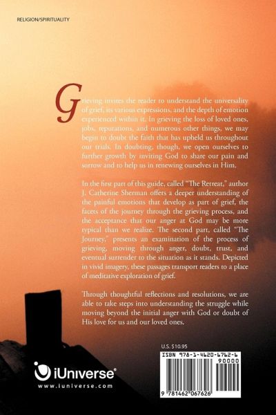 Grieving invites the reader to understand the universality of grief, its various expressions, and the depth of emotion experienced within it. In grieving the loss of loved ones, jobs, reputations, and numerous other things, we may begin to doubt the faith that has upheld us throughout our trials. In doubting, though, we open ourselves to further growth by inviting God to share our pain and sorrow and to help us in renewing ourselves in Him. In the first part of this guide, called "The Retreat," author J. Catherine Sherman offers a deeper understanding of the painful emotions that develop as part of grief, the facets of the journey through the grieving process, and the acceptance that our anger at God may be more typical than we realize. The second part, called "The Journey," presents an examination of the process of grieving, moving through anger, doubt, trust, and eventual surrender to the situation as it stands. Depicted in vivid imagery, these passages transport readers to a place of meditative exploration of grief. Through thoughtful reflections and resolutions, we are able to take steps into understanding the struggle while moving beyond the initial anger with God or doubt of His love for us and our loved ones.