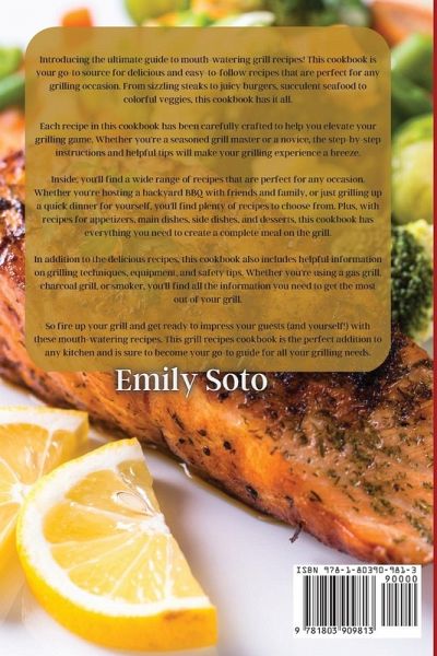 ntroducing the ultimate guide to mouth-watering grill recipes! This cookbook is your go-to source for delicious and easy-to-follow recipes that are perfect for any grilling occasion. From sizzling steaks to juicy burgers, succulent seafood to colorful veggies, this cookbook has it all. Each recipe in this cookbook has been carefully crafted to help you elevate your grilling game. Whether you're a seasoned grill master or a novice, the step-by-step instructions and helpful tips will make your grilling experience a breeze. Inside, you'll find a wide range of recipes that are perfect for any occasion. Whether you're hosting a backyard BBQ with friends and family, or just grilling up a quick dinner for yourself, you'll find plenty of recipes to choose from. Plus, with recipes for appetizers, main dishes, side dishes, and desserts, this cookbook has everything you need to create a complete meal on the grill. In addition to the delicious recipes, this cookbook also includes helpful information on grilling techniques, equipment, and safety tips. Whether you're using a gas grill, charcoal grill, or smoker, you'll find all the information you need to get the most out of your grill. So fire up your grill and get ready to impress your guests (and yourself!) with these mouth-watering recipes. This grill recipes cookbook is the perfect addition to any kitchen and is sure to become your go-to guide for all your grilling needs.