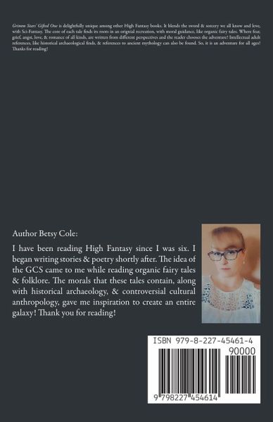 Grimm Stars' Gifted One is delightfully unique among other High Fantasy books. It blends the sword and sorcery, we all know and love, with Sci-Fantasy, and a base of moral guidance from original fairy tales. Where grief, angst, love, and romance of all kinds, are given from different perspectives. Intellectual adult references, like historical archaeological finds, and references to ancient mythology and folklore, can also be found. So, it is an adventure for all ages! This interactive novel with complete world-building, opens into a multi-storyline quest. The reader decides their journey, choosing between one of two timelines. With heroes aiding the journey, this is a quest that even 'Indiana Jones' couldn't pass on! The race to the relics, across an unknown galaxy to save the Ancient Rulers, rests on the shoulders of a gifted child and her newly found friends.