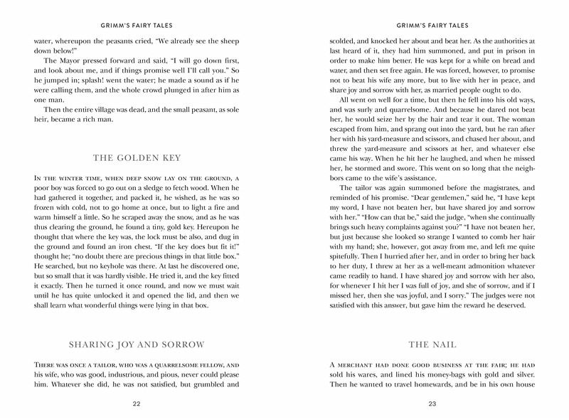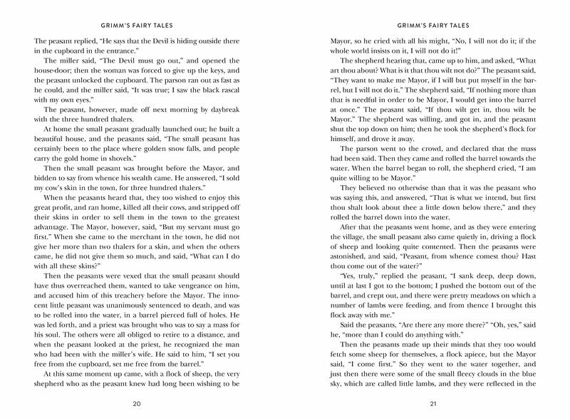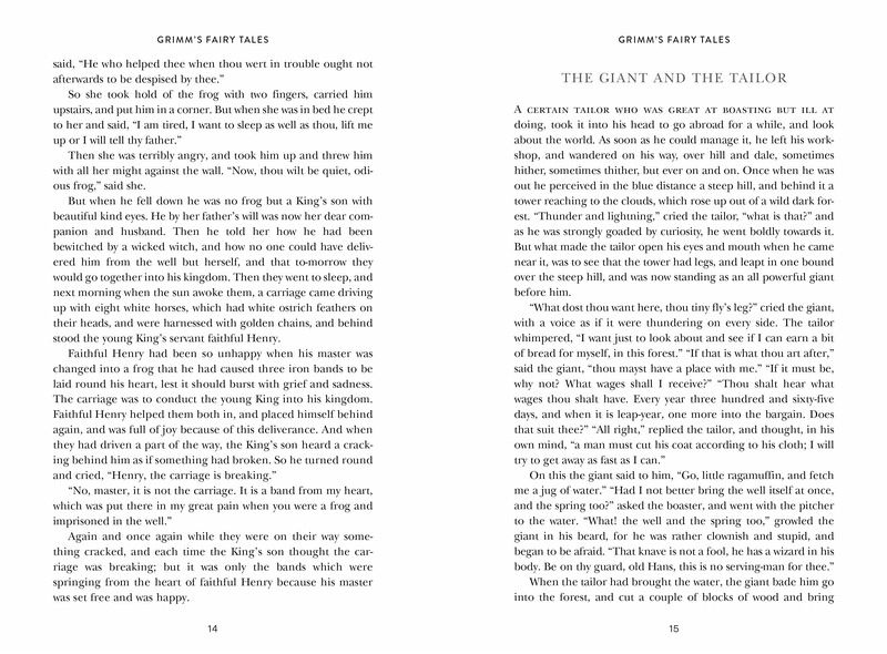 Jakob Ludwig Grimm and Wilhelm Karl Grimm were born in Hanau, Germany, in 1785 and 1786, respectively. The brothers were part of a family of nine children who lived in the countryside. Their first volume of fairy tales (from which this book takes its content), Children’s and Household Stories, was published in 1812. A collection of stories told to them by peasants and villagers, it was created as a collaborative effort: Jakob did the research behind the stories, and Wilhelm crafted them.