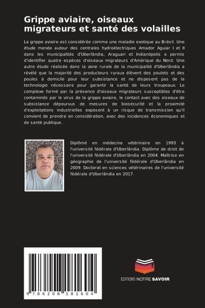 La grippe aviaire est considérée comme une maladie exotique au Brésil. Une étude menée autour des centrales hydroélectriques Amador Aguiar I et II dans les municipalités d'Uberlândia, Araguari et Indianópolis a permis d'identifier quatre espèces d'oiseaux migrateurs d'Amérique du Nord. Une autre étude réalisée dans la zone rurale de la municipalité d'Uberlândia a révélé que la majorité des producteurs ruraux élèvent des poulets et des poules à domicile pour leur subsistance et ne disposent pas de la technologie nécessaire pour garantir la santé de leurs troupeaux. Le complexe formé par la présence d'oiseaux migrateurs susceptibles d'être contaminés par le virus de la grippe aviaire, le contact avec des oiseaux de subsistance dépourvus de mesures de biosécurité et la proximité d'exploitations industrielles exposent à un risque de transmission qu'il convient de prendre en considération, avec des incidences économiques et de santé publique.