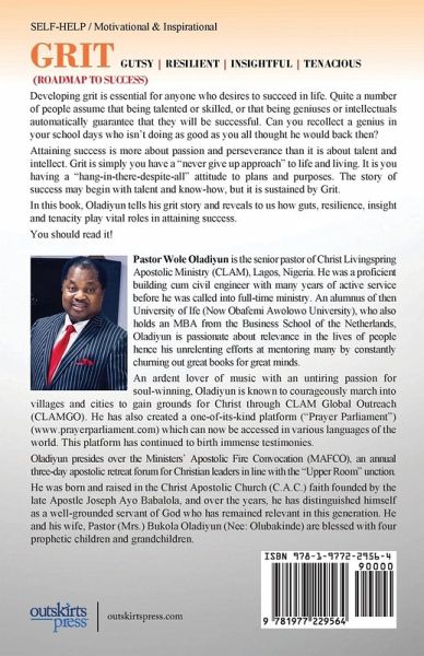 Developing grit is essential for anyone who desires to succeed in life. Quite a number of people assume that being talented or skilled, or that being geniuses or intellectuals automatically guarantee that they will be successful. Can you recollect a genius in your school days who isn't doing as good as you all thought he would back then? Attaining success is more about passion and perseverance than it is about talent and intellect. Grit is simply you have a "never give up approach" to life and living. It is you having a "hang-in-there-despite-all" attitude to plans and purposes. The story of success may begin with talent and know-how, but it is sustained by Grit. In this book, Oladiyun tells his grit story and reveals to us how guts, resilience, insight and tenacity play vital roles in attaining success. You should read it!
