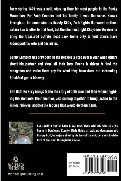 Early spring 1829 was a cold, starving time for most people in the Rocky Mountains. For Zach Connors and his family, it was the same. Known throughout the mountains as Grizzly Killer, Zach fights the worst mother-nature has to offer to find food, but then he must fight Cheyenne Warriors to bring the treasured buffalo meat back home only to find others have kidnapped his wife and her sister. Benny Lambert has only been in the Rockies a little over a year when others shoot his partner and steal all their furs. Benny is driven to find the renegades and make them pay for what they have done but marauding Blackfeet get in his way. Hell Hath No Fury brings to life the story of both men and their women fighting the elements, their enemies, and coming together to bring justice to the killers, thieves, and hostile Indians that would do them harm.