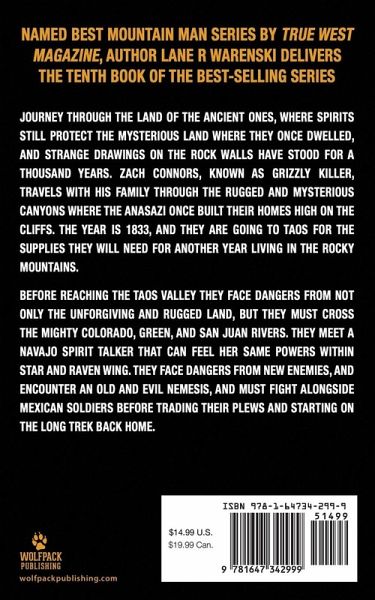 NAMED BEST MOUNTAIN MAN SERIES BY TRUE WEST MAGAZINE, AUTHOR LANE R WARENSKI DELIVERS THE TENTH BOOK OF THE BEST-SELLING SERIES. Journey through the land of the ancient ones, where spirits still protect the mysterious canyons where they once dwelled, and strange drawings on the rock walls have stood for a thousand years. Zach Connors, known as Grizzly Killer, travels with his family through the rugged and mysterious canyons where the Anasazi once built their homes high on the cliffs. The year is 1833, and they are going to Taos for the supplies they will need for another year living in the Rocky Mountains. Before reaching the Taos Valley they face dangers from not only the unforgiving and rugged land, but they must cross the mighty Colorado, Green and San Juan Rivers. They meet a Navajo Spirit Talker that can feel her same powers within Star and Raven Wing. They face dangers from new enemies, and encounter an old and evil nemesis, and must fight alongside Mexican soldiers before trading their plews and starting on the long trek back home.