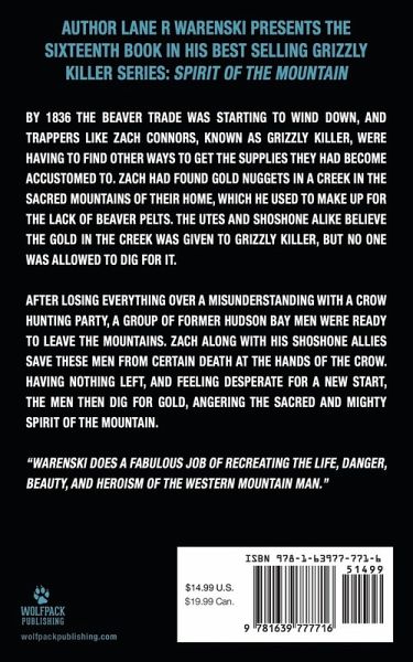 "By 1836 the beaver trade was starting to wind down, and trappers like Zach Connors, known as Grizzly Killer, were having to find other ways to get the supplies they had become accustomed to. Zach had found gold nuggets in a creek in the sacred mountains of their home, which he used to make up for the lack of beaver pelts. The Utes and Shoshone alike believe the gold in the creek was given to Grizzly Killer, but no one was allowed to dig for it. After losing everything over a misunderstanding with a Crow hunting party, a group of former Hudson Bay men were ready to leave the mountains. Zach along with his Shoshone allies save these men from certain death at the hands of the Crow. Having nothing left, and feeling desperate for a new start, the men then dig for gold, angering the sacred and mighty Spirit of the Mountain." --