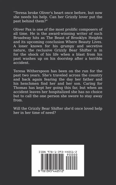 "Teresa broke Oliver's heart once before, but now she needs his help. Can her Grizzly lover put the past behind them?" Oliver Pax is one of the most prolific composers of all time. He is the award-winning writer of such Broadway hits as The Beast of Brooklyn Heights and its upcoming conclusion Where Beauty Lives. A loner known for his grumpy and secretive nature, the reclusive Grizzly Bear Shifter is in for the shock of his life when a blast from his past washes up on his doorstep after a terrible accident. Teresa Witherspoon has been on the run for the past two years. She's traveled across…mehr